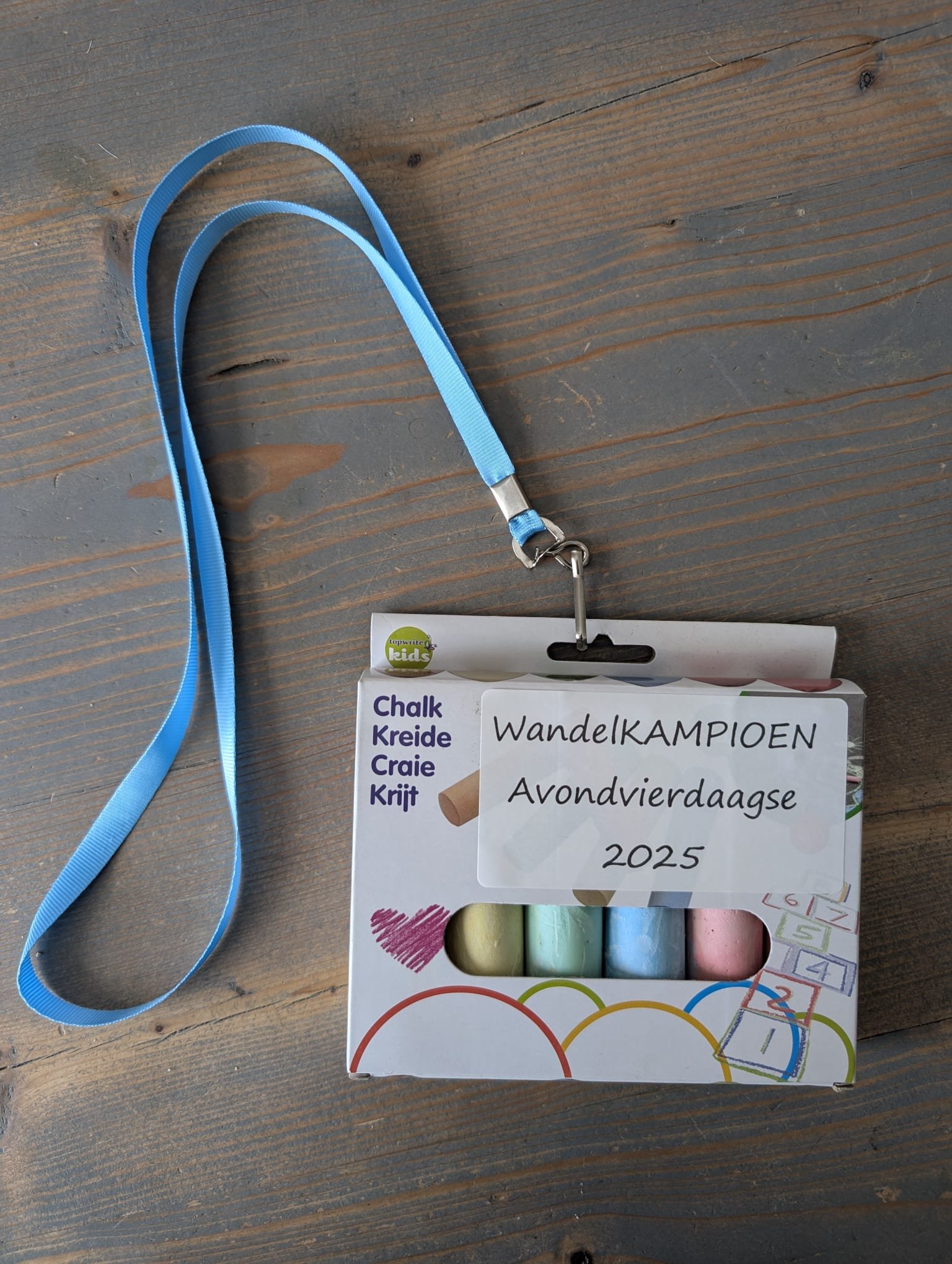 Verras jouw wandelkampioen met dit vrolijke stoepkrijt als aandenken aan de avondvierdaagse!