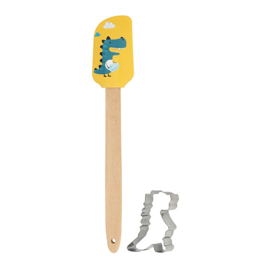 1 houten/siliconen beslagspatel met leuke dinoprint