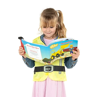 • Inhoud: Activiteitenboek (32 pagina’s), bouwvakkersvest, hamertje