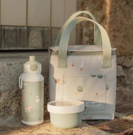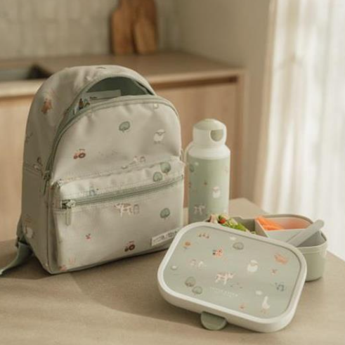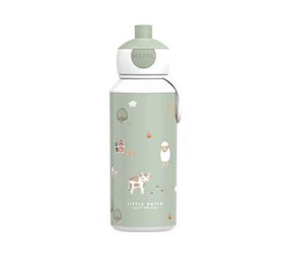 De Mepal Little Farm pop-up drinkfles is ideaal tijdens drukke momenten. Met één druk open je de drinktuit om een slok te nemen. Nog een druk en de tuit sluit weer.
