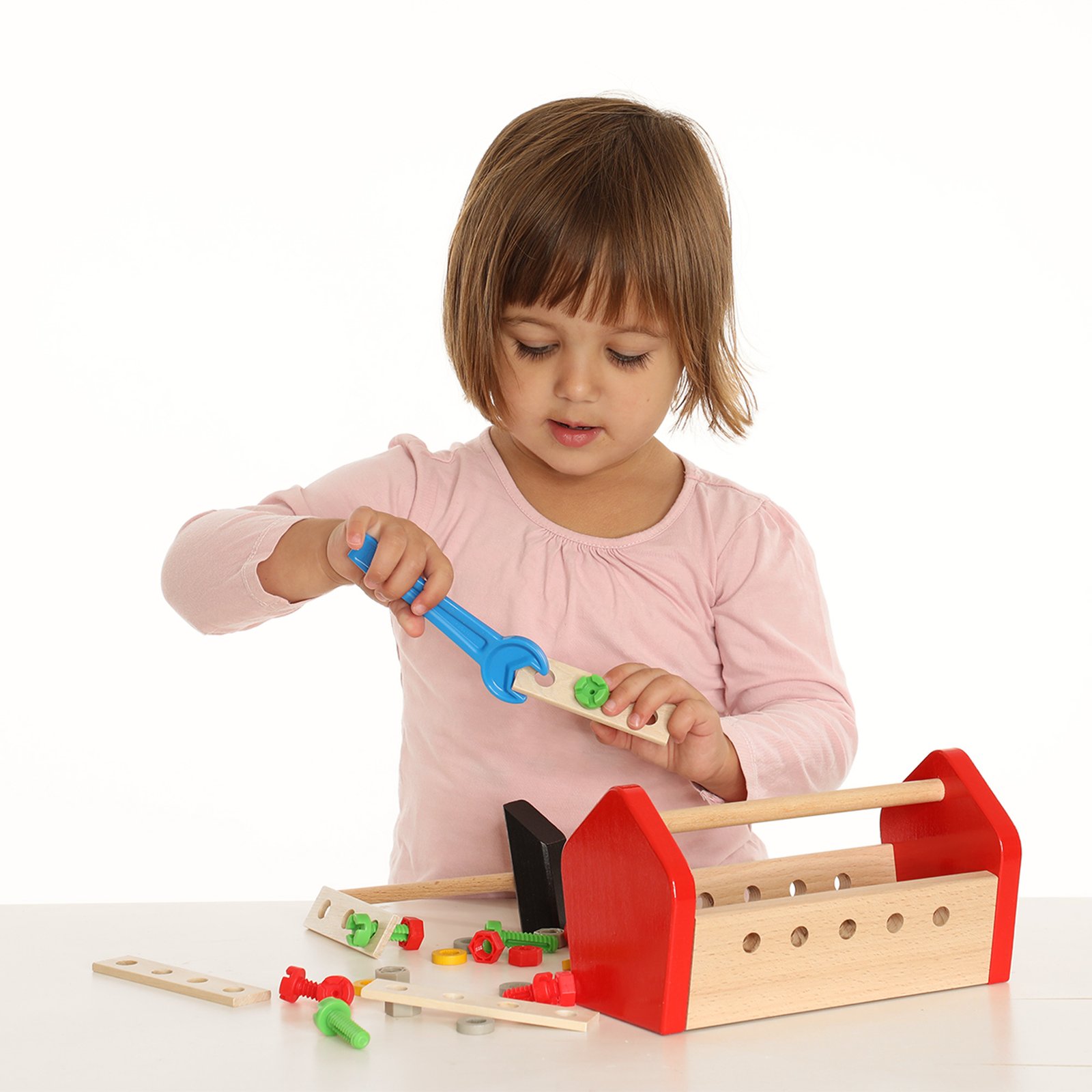 - Complete gereedschapskist: Bevat een hamer, moersleutel, schroevendraaier, 4 plankjes, bouten en moeren voor een realistische kluservaring.