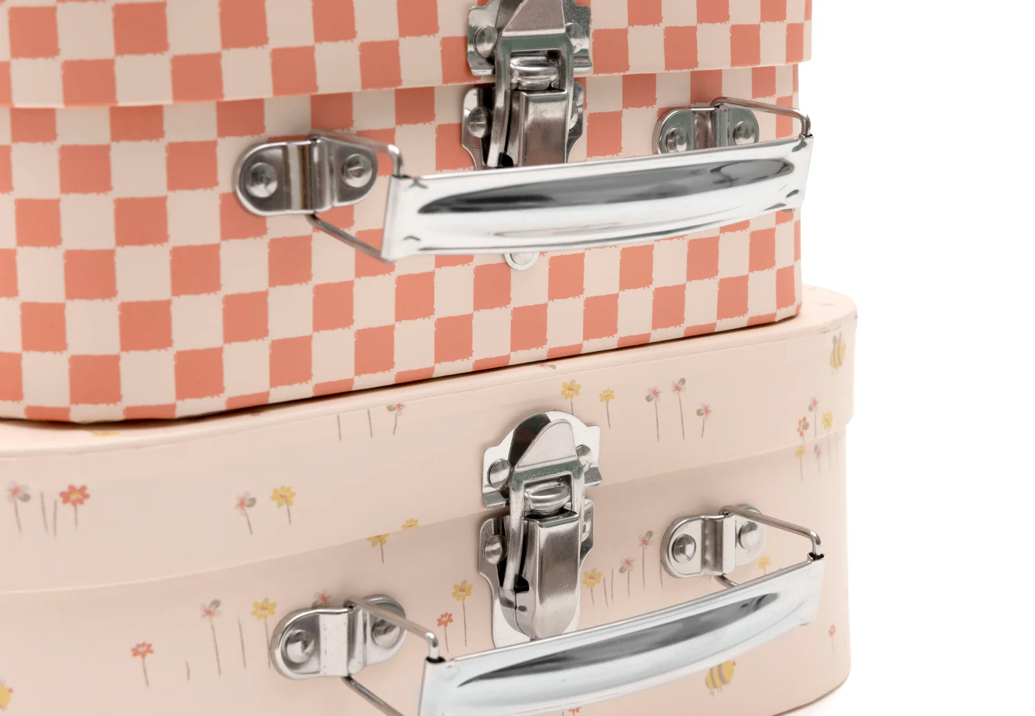 Dit speelkoffer setje in de Pretty Picnic stijl is perfect voor je kleintje! De koffertjes hebben verschillende prints en dezelfde kleuren als het Pretty Picnic thema, met zilverkleurige handvatten die het geheel een speelse uitstraling geven. Beide koffertjes hebben een all-over bloemenprint aan de binnenkant en de tekst ‘belongs to’ zodat jouw mini ze overal mee naartoe kan nemen. Ideaal voor het opbergen van kleine spulletjes of als decoratie in de babykamer!