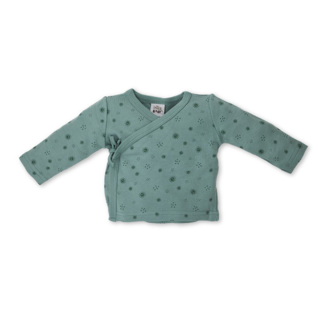 De set is ontworpen voor pasgeborenen van 0-6 maanden oud en wordt gepresenteerd in een stijlvolle blauwe groen. Elk kledingstuk is zorgvuldig gemaakt met aandacht voor detail en comfort, zodat je baby zich de hele dag door knus en tevreden voelt.
