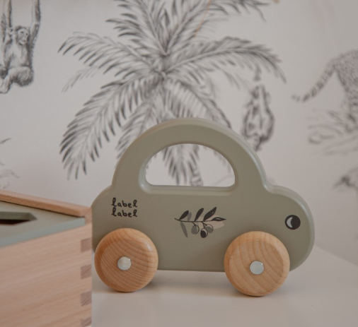 Label Label Olijfgroen Houten Speelgoed Auto