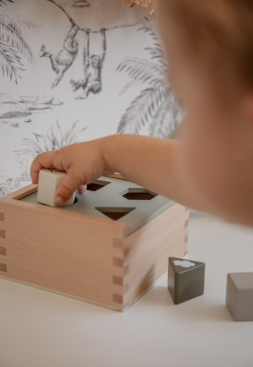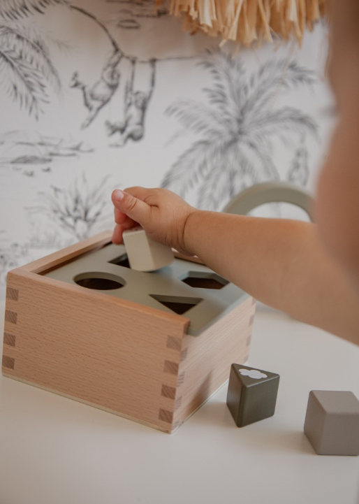 Wat zal je kleintje heerlijk spelen met deze houten vormenstoof van Label Label! De vormenstoof heeft verschillende openingen waar de vormpjes in geduwd moeten worden. De vormpjes hebben ook een leuk print figuurtje.