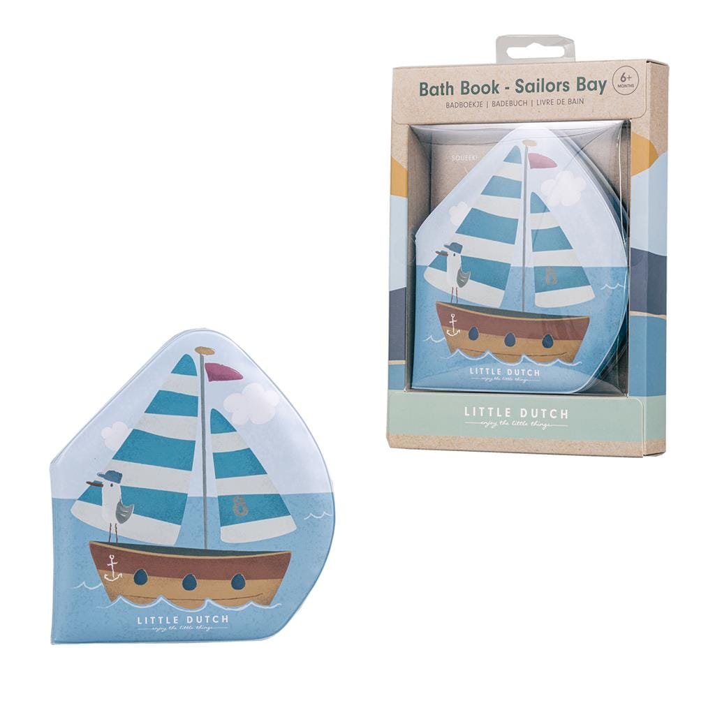 Het Little Dutch Badboekje Sailors Bay maakt van ieder badmoment een klein avontuur. Tijdens het badderen ontdekt je kindje de gezellige baai met bootjes, een nieuwsgierige meeuw en een vuurtoren waar zijn vriendjes vrolijk omheen vliegen. De zachte illustraties en herkenbare figuurtjes uit de Sailors Bay-collectie zorgen voor extra kijk- en speelplezier.