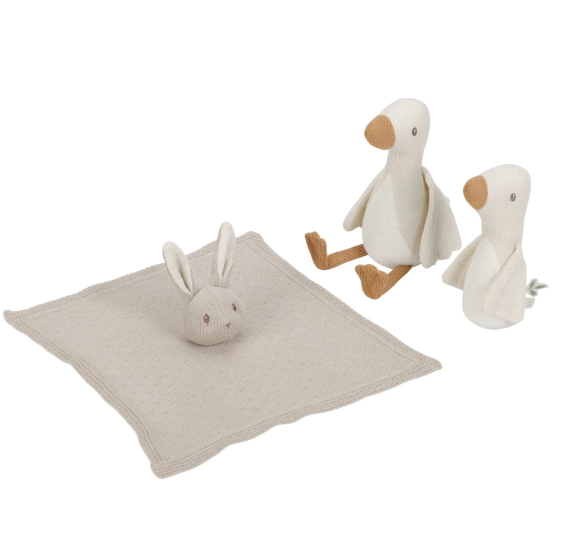 Een teder begin voor een nieuw leven. Deze gebreide Little Dutch giftset uit de Newborn Naturals collectie is een liefdevol geschenk voor pasgeboren baby’s. In de mooie doos zitten drie zachte essentials die uitnodigen tot knuffelen en rusten. Het gebreide knuffeldoekje biedt troost en geborgenheid, het rammelaartje prikkelt de zintuigen en de zachte bijtring helpt bij het doorkomen van de eerste tandjes. Alles is gemaakt van zachte materialen in rustige, natuurlijke tinten. Speciaal afgestemd op de allereerste maanden. Een stijlvol en warm welkom voor de baby en een hartverwarmend gebaar voor kersverse ouders.