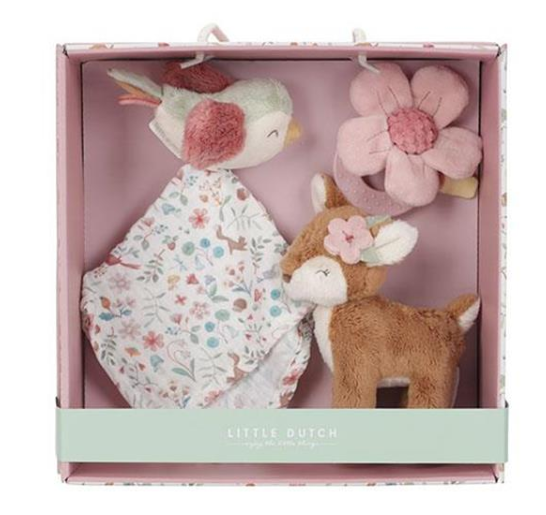 De Little Dutch Giftset knuffels – Fairy Garden is een liefdevol samengesteld geschenk voor pasgeboren baby’s. Deze set bevat drie zachte producten die uitnodigen tot slapen, knuffelen en spelen. Daardoor is het een ideaal kraamcadeau of babyshower geschenk dat zowel praktisch als hartverwarmend is.