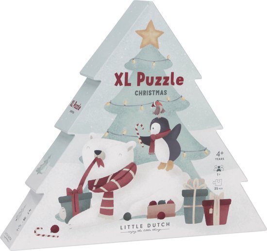 Geniet van de gezellige kerstdagen en maak samen de XL kerstpuzzel. Kom op de grond zitten en leg alle 35 puzzelstukken in elkaar. Zo ontstaat er een grote illustratie van 93cm hoog. Het rendier, konijntje en hun andere vriendjes zijn druk bezig om de kerstboom te versieren. De XL kerstpuzzel bevordert de concentratie en hand-oogcoördinatie van je kleintje. Wat zie jij allemaal verschijnen? Leeftijd: vanaf 4 jaar.