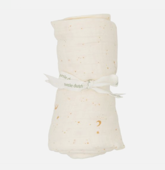 Geef het perfecte kraamcadeau met deze luxe Little Dutch Giftbox โ Moon & Stars โ Soft White. De prachtige geschenkset bevat drie onmisbare items: een hydrofiele doek en speendoekje met de schattige Moon & Stars-print, plus een bandana slab in een rustige Soft White kleur met subtiel borduursel.