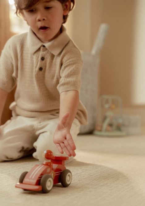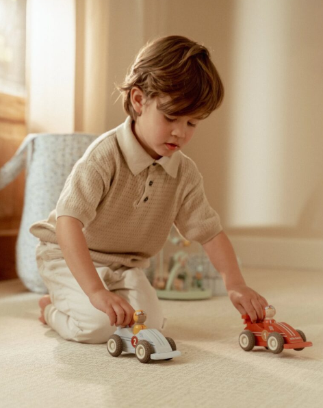 Met deze set van twee houten raceauto’s met coole terugtrekfunctie beleef je eindeloze races. Trek ze naar achteren, laat los en kijk hoe ze over de baan schieten. De set bevat twee stoere coureurs die klaarstaan voor de start.