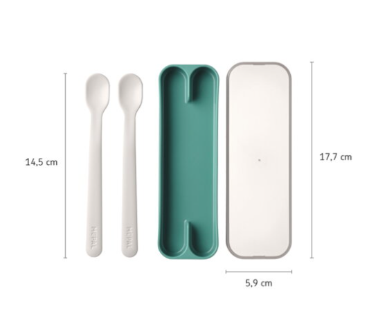 Speciaal voor hongerige hummeltjes is er nu de babylepel Mepal Mio in Sailors Bay. De lepel wordt geleverd als set van twee in een handig opbergdoosje. Makkelijk mee te nemen dus! De babylepel is smal en ondiep, zodat het voor de allerkleinsten ook makkelijk eet. Dankzij de lange steel haal je ook het allerlaatste beetje uit een potje babyvoeding.