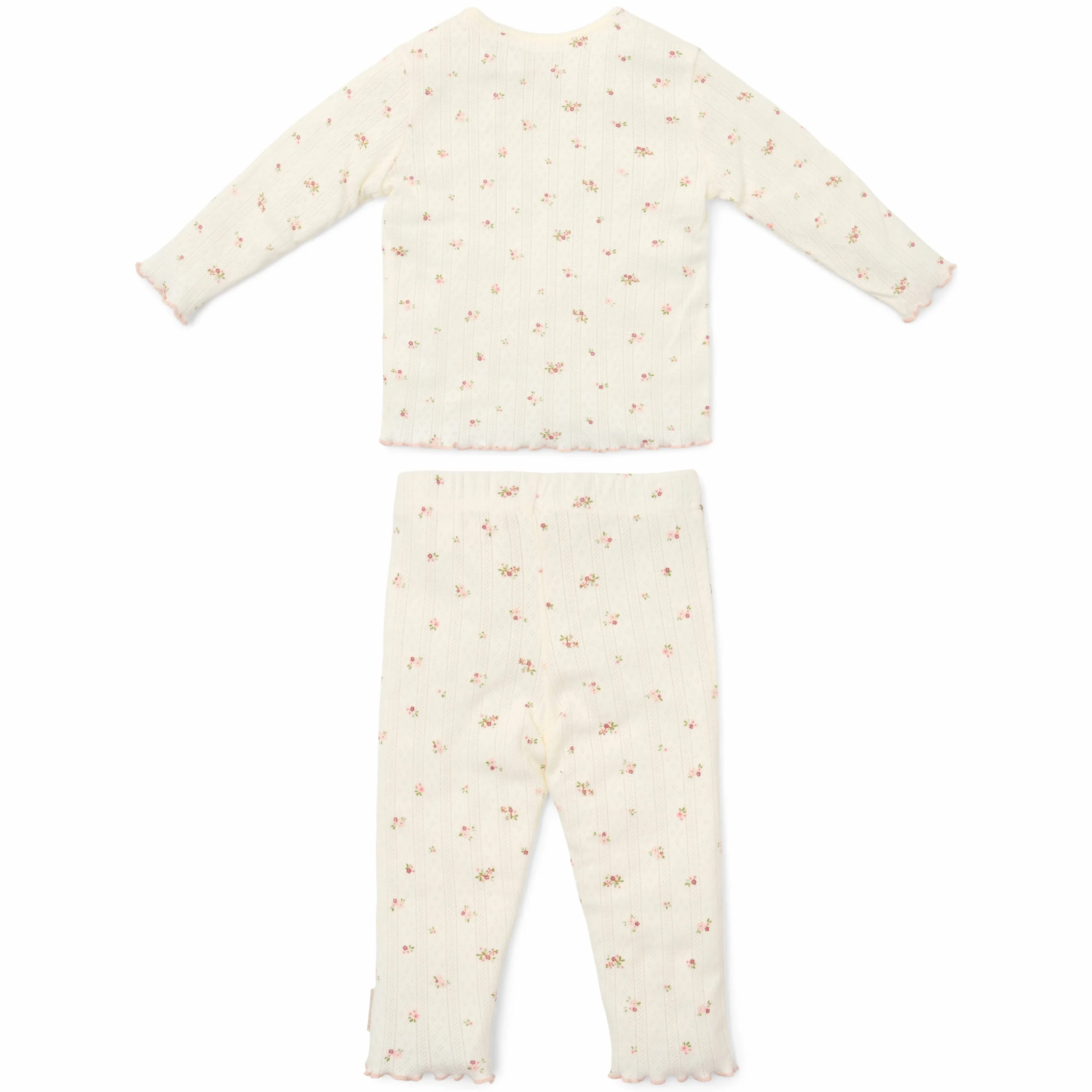 Gemaakt van heerlijk zacht biologisch katoen met een subtiele pointelle structuur, wordt deze pyjama versierd met lieve roze bloemetjes die een frisse en vrolijke uitstraling geven.