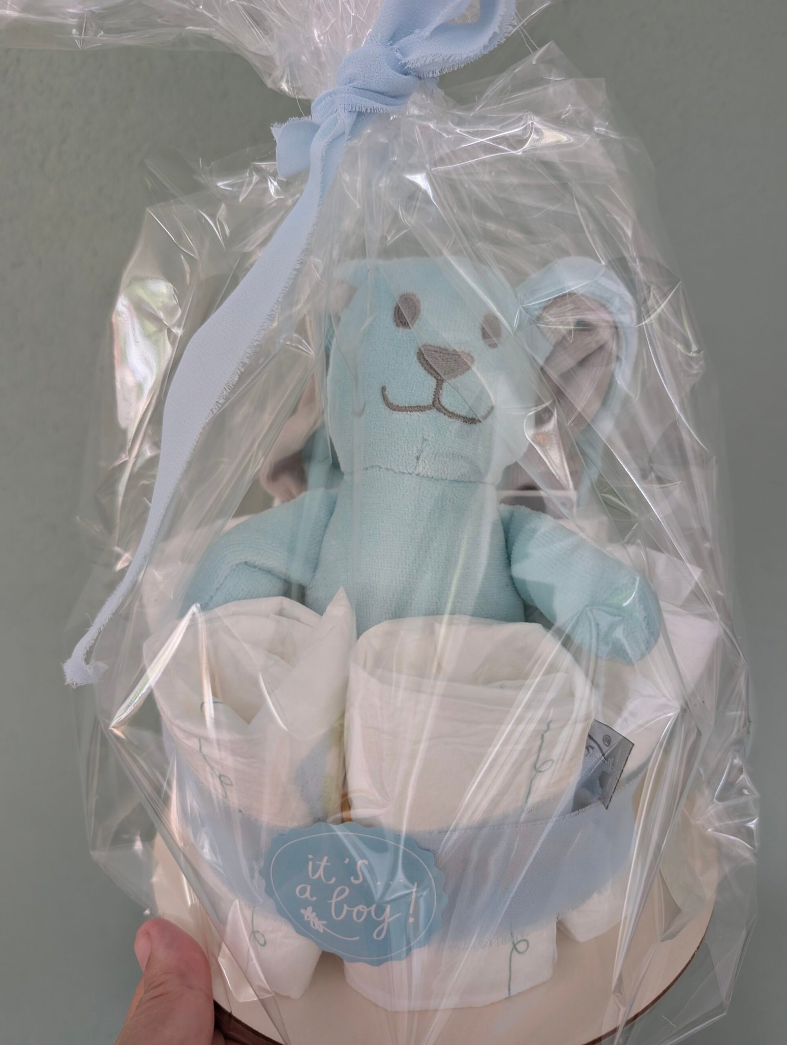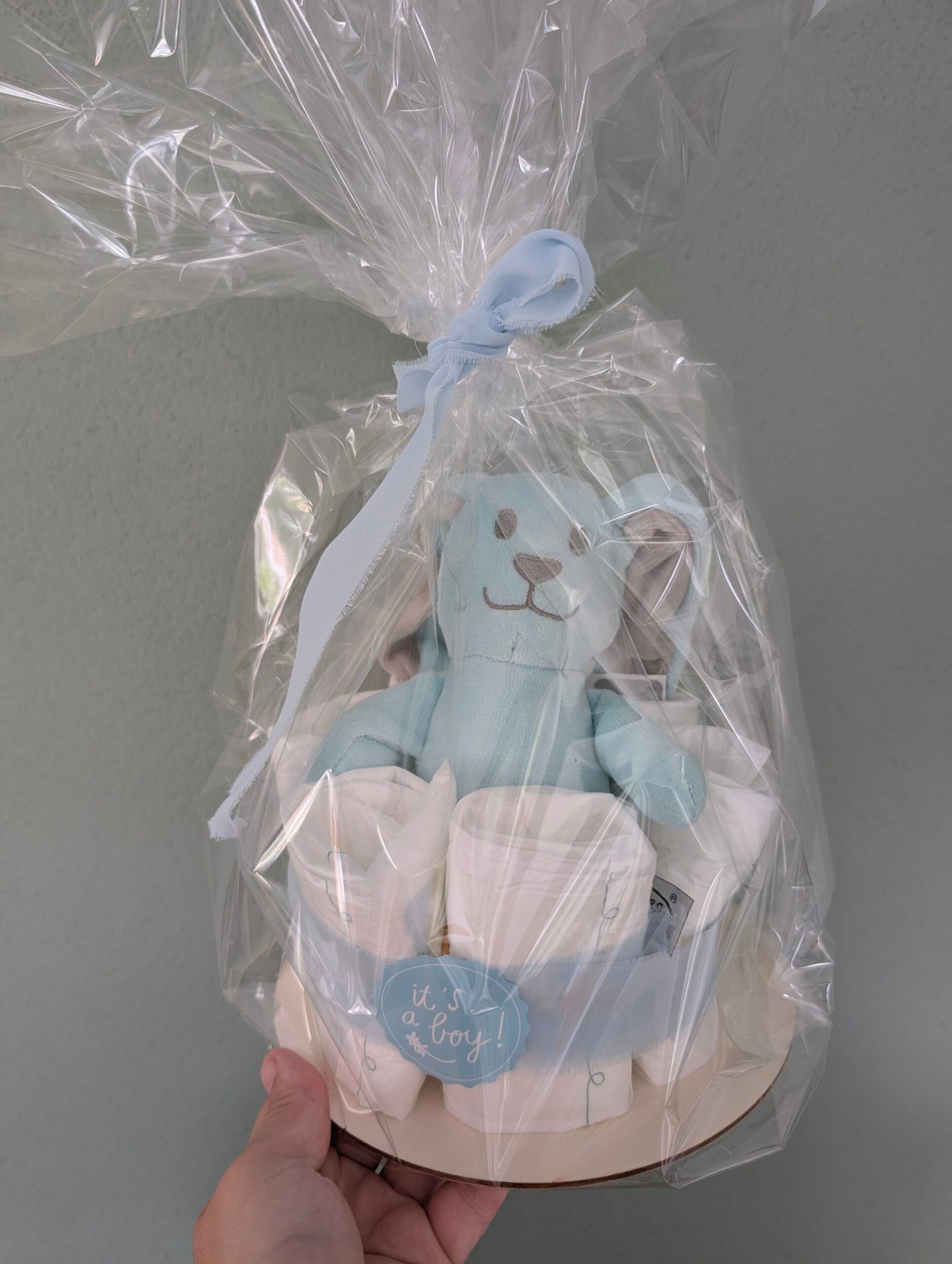 Een lief en modern kraamcadeautje in blauwtinten! Deze zorgvuldig samengestelde luiertaart bevat 6 zachte luiers, handig en direct bruikbaar voor de pasgeboren baby.