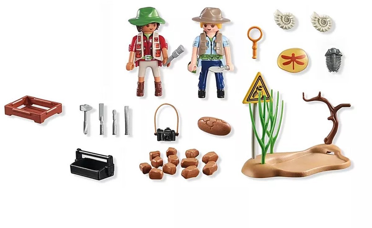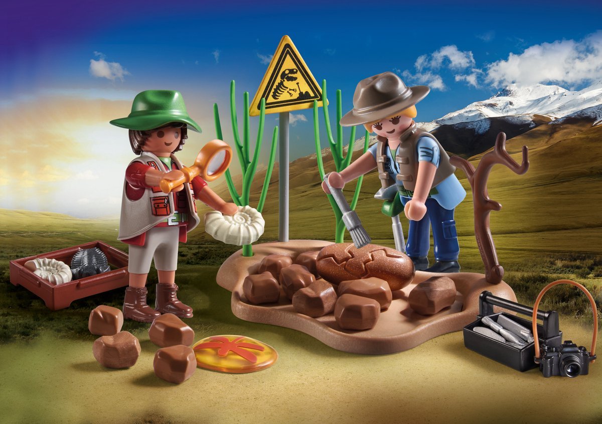 Ga op ontdekkingstocht met de PLAYMOBIL Wild Life Archeologische Opgravingen set. Twee paleontologen hebben een bijzondere vondst gedaan en onderzoeken opgegraven fossielen op de opgravingssite. Met camera, gereedschap en accessoires kunnen kinderen zelf spannende archeologische avonturen naspelen.
