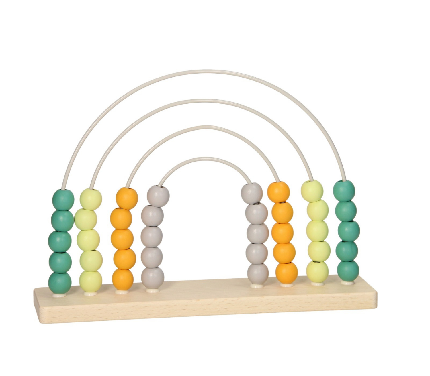 Leer kinderen spelenderwijs tellen met het Telraam Hout – Groen. Dit klassieke houten telraam heeft vier bogen met gekleurde houten kralen in groen, lichtgroen, oker en grijs. Kinderen kunnen de kralen eenvoudig heen en weer schuiven, waardoor ze spelenderwijs het tellen en het ontwikkelen van hun concentratie oefenen.