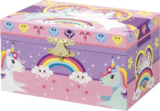 Bewaar je mooiste sieraden en kleine schatten in deze Totum Eenhoorn Sieradendoos met Muziek. Het doosje heeft een vrolijke unicornprint aan de buitenkant en een groot opbergvak vanbinnen, ideaal voor ringen, armbandjes of andere bijzondere spulletjes.