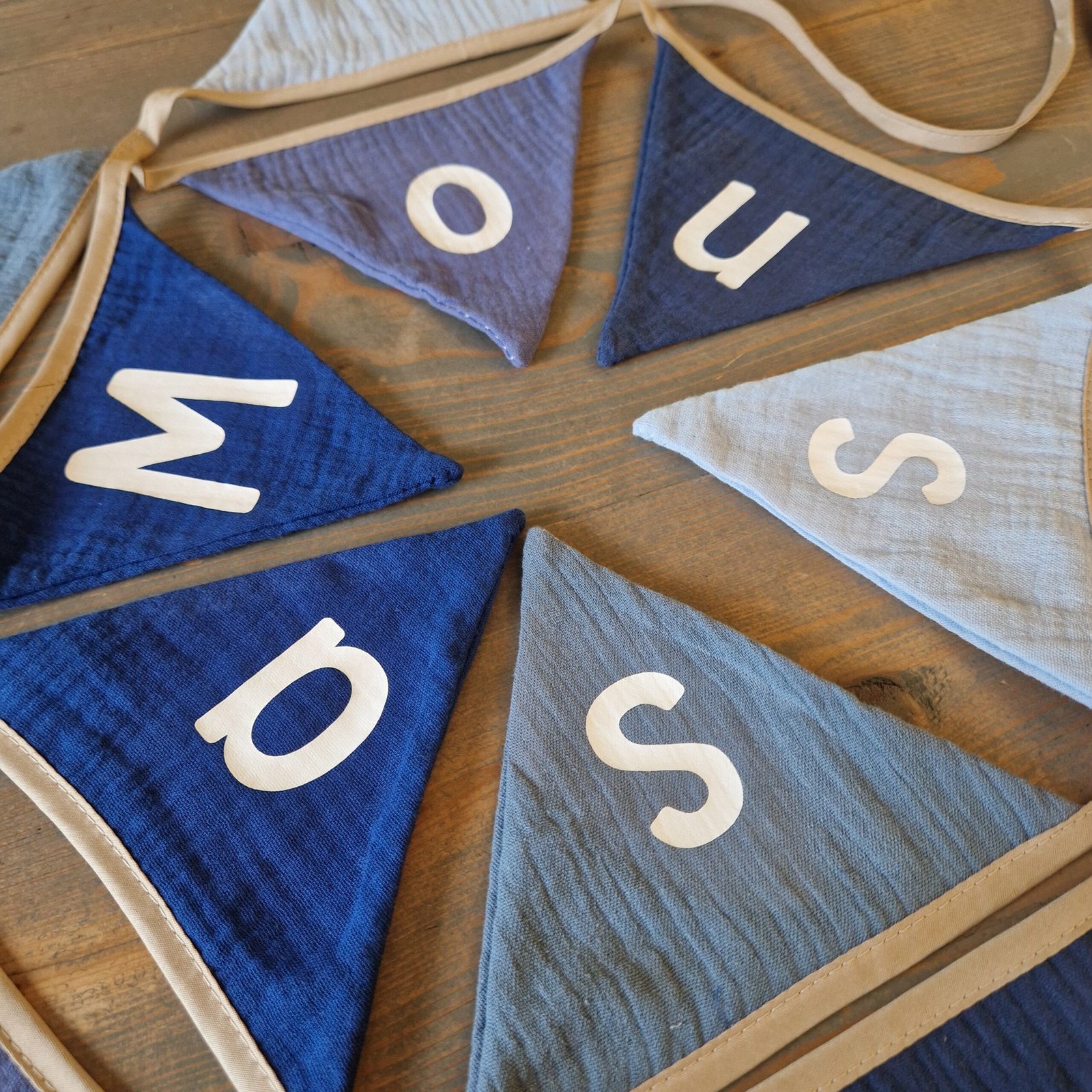 Een prachtige vlaggenlijn met 10 stoffen vlaggetjes, ideaal om een persoonlijke touch te geven aan elke gelegenheid! De vlaggetjes kunnen voorzien worden van een naam, wat het perfect maakt voor verjaardagen, kraamfeesten of andere feestelijke momenten.