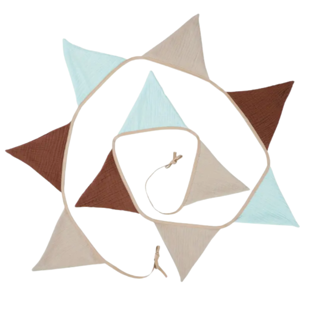 Home » Producten » Vlaggenlijn met Stoffen Slingers Bruin,Beige, Lichtblauw